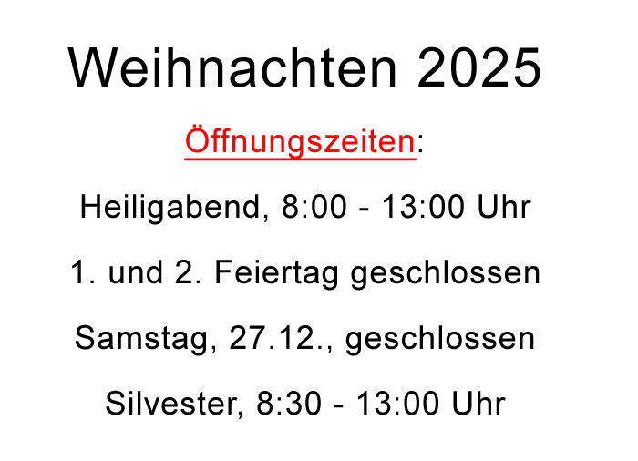 Montag bis Freitag 8:30 – 13:00 und 14:30 – 18:00